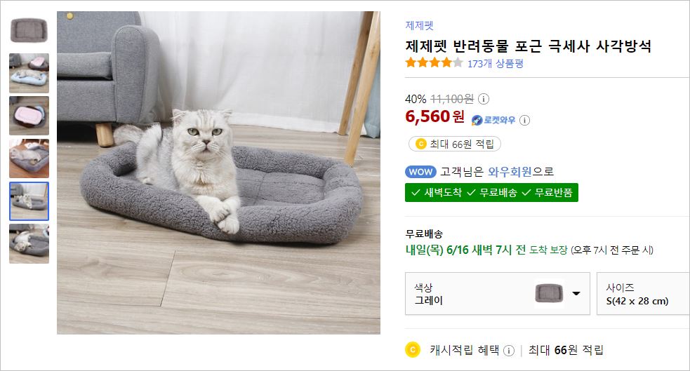 고양이 방석은 작은 사이즈로 했습니다. 석달 위에 다시 큰 걸로 구입하려고요. 제제펫 반려동물 포근 극세사 사각방석입니다. 저렴한 거구요. 정말 사고 싶은 방석이 의외로 많습니다. 고양이 한 마리 때문에 호구가 된 듯한 이 느낌은 뭘까요?