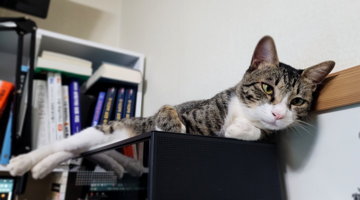 가끔. 정말 가끔 내가 자고 있으면 내 옆에 올라와 잤다. 하지만 대부분 혼자 떨어져 잤다. 잃어 버리기 며칠 전부터는 이상하게 내 곁에 자주 붙어 있었다. 속으로 이제 애교쟁이가 다 됐다. 생각했다. 불편하게 책당 다리에 붙어서 뭄을 구부리고 작고 있다. 자꾸 아빠 주위를 맴돌았다. 그리고 4일 뒤에 까뭉이는 내 곁을 떠났다. 아직도 돌아오지 않았다.