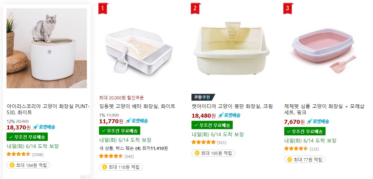 쿠팡에 보니 고양이 화장실이 많은 팔리는 게 2만 원 이하다. 다행인지 불행인지 모르겠지만 디자인은 썩 마음에 들지 않는다. 일단 그냥 두었다.
